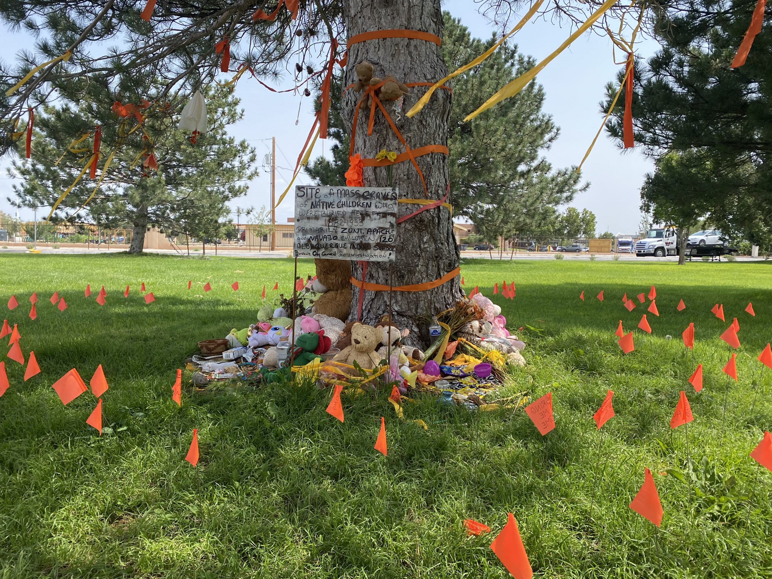 A missing plaque at 4-H Park dedicated to Indigenous students who attended Albuquerque Indian School leads to our investigation of how a city park and playground was built upon a cemetery of unmarked graves.